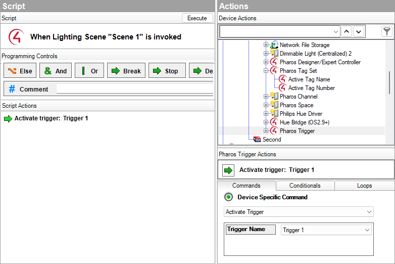 The Pharos Trigger driver allows you to activate Triggers in the Pharos Designer product.