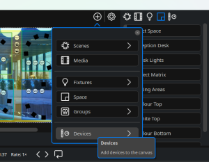 Touch devices are placed in the Canvas on their Space and can be added by clickingAdd, selecting Devices and choosing the touch device type you want to add. Click on the canvas to place a touch device. Once a touch device is placed on the canvas the touch interface helper will be opened. For more information, see Working with Touch Interfaces.
